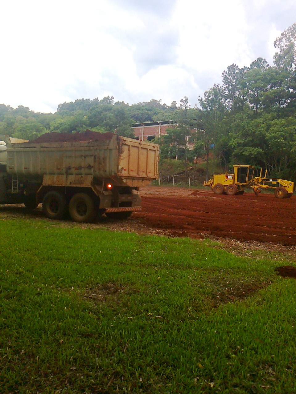 Na última quinta-feira foram iniciados os trabalhos de colocação de mais terra no campo de futebol. Porém os trabalhos tiveram de serem interrompidos em função da intensa chuva que ocorreu antes do término dos trabalhos. (Veja mais fotos em ATIVIDADES - Futebol de Campo)